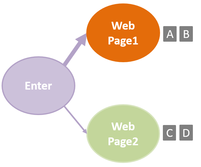 So far, nothing new. Now, lets make this a little more complicated. Instead of making a decision at just one touch-point, let’s add another page where we want to add another set of experiences to test. We now have the following: